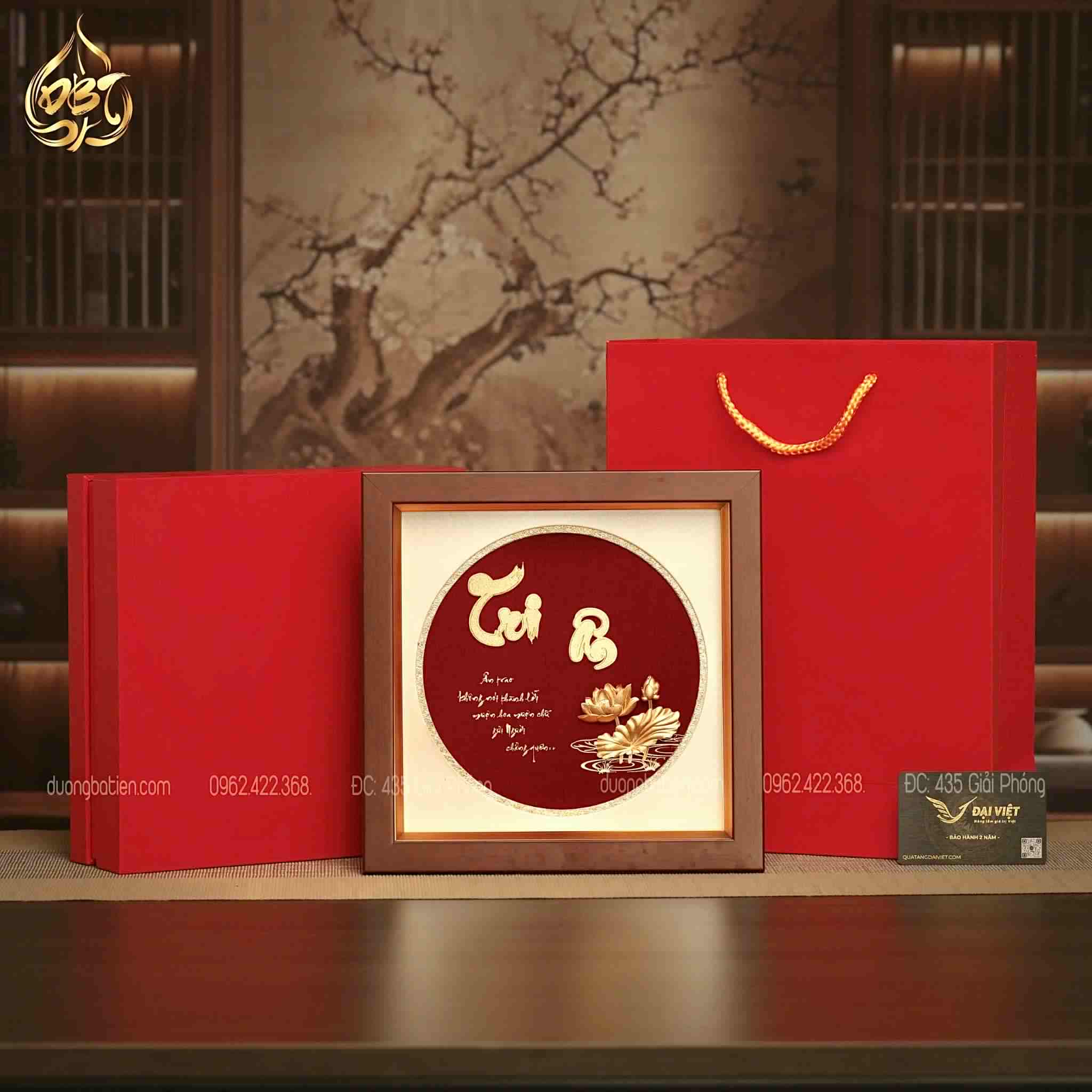 Tranh chữ Tri Ân Dát Vàng 24K là lựa chọn lý tưởng cho quà tặng tri ân cao cấp, kết hợp hài hòa giữa nghệ thuật thủ công, giá trị tinh thần và yếu tố phong thủy. Sản phẩm không chỉ đẹp về hình thức mà còn sâu sắc về ý nghĩa, giúp người tặng gửi gắm trọn vẹn lời cảm ơn chân thành và trang trọng.