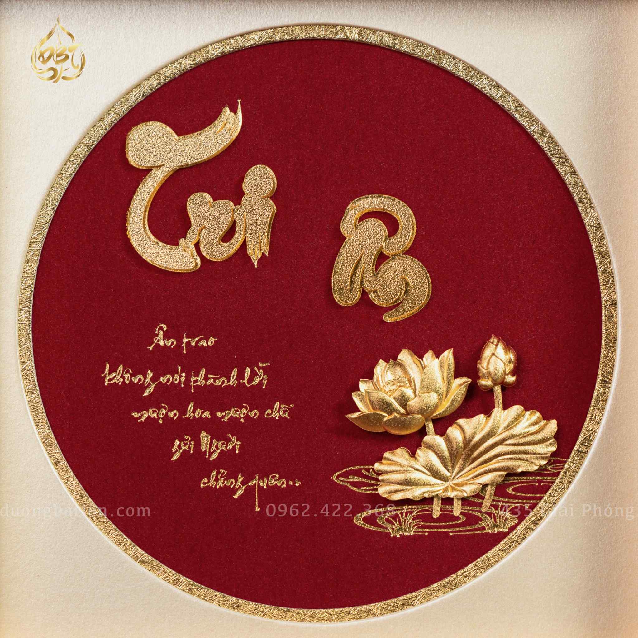 • Chữ Tri Ân dát vàng 24K, sáng đẹp, bền màu theo thời gian.